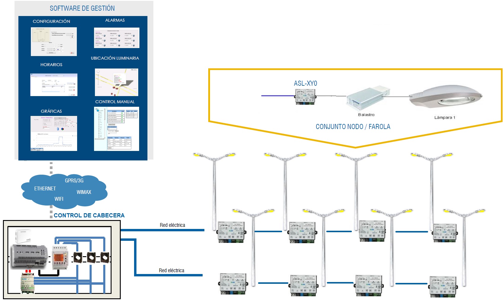 – Conocer la calidad de la red eléctrica, las horas de funcionamiento, establecer horarios de encendido y la intensidad de luz un función de la situación…